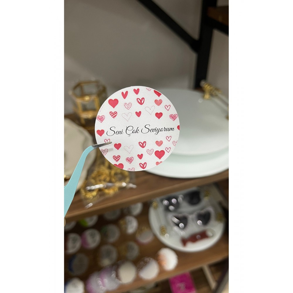 Seni Çok Seviyorum Yazılı Kalpli Etiket 4x4 Cm 50 Adet - Arl Etiket Tasarım