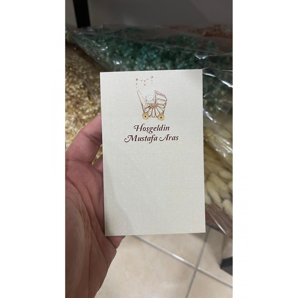 Hoş geldin Yazılı Yenidoğan Hediyelik ve Masa Kartı 9,5x15 cm - Arletikettasarım