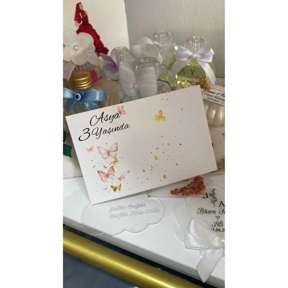 Kelebekli Doğum Günü Hediyelik Kartı 9x15 cm 50 Adet - Arletikettasarim Dijital baskı Kişiye özel