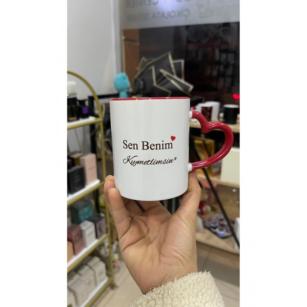 Kupa Bardak Kalpli Sen Benim Kıymetlimsin Yazılı Kalpli