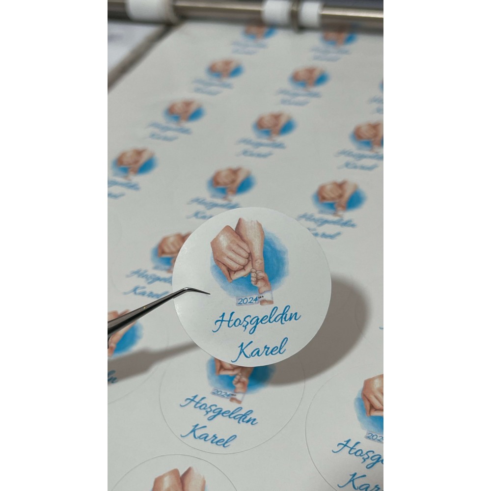 Yenidoğan Hediye Paketi Etiketi Yuvarlak Hoşgeldin Yazılı 54 Adet