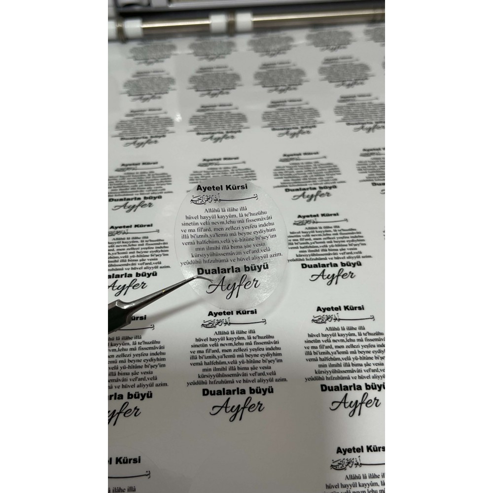 Ayetel Kürsi İsme Özel Şeffaf Etiket 4x5 42 Adet