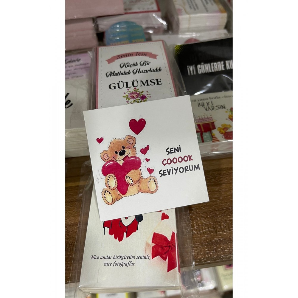 Seni Çok Seviyorum Yazılı Motto Kart 7x7 cm 50 Adet